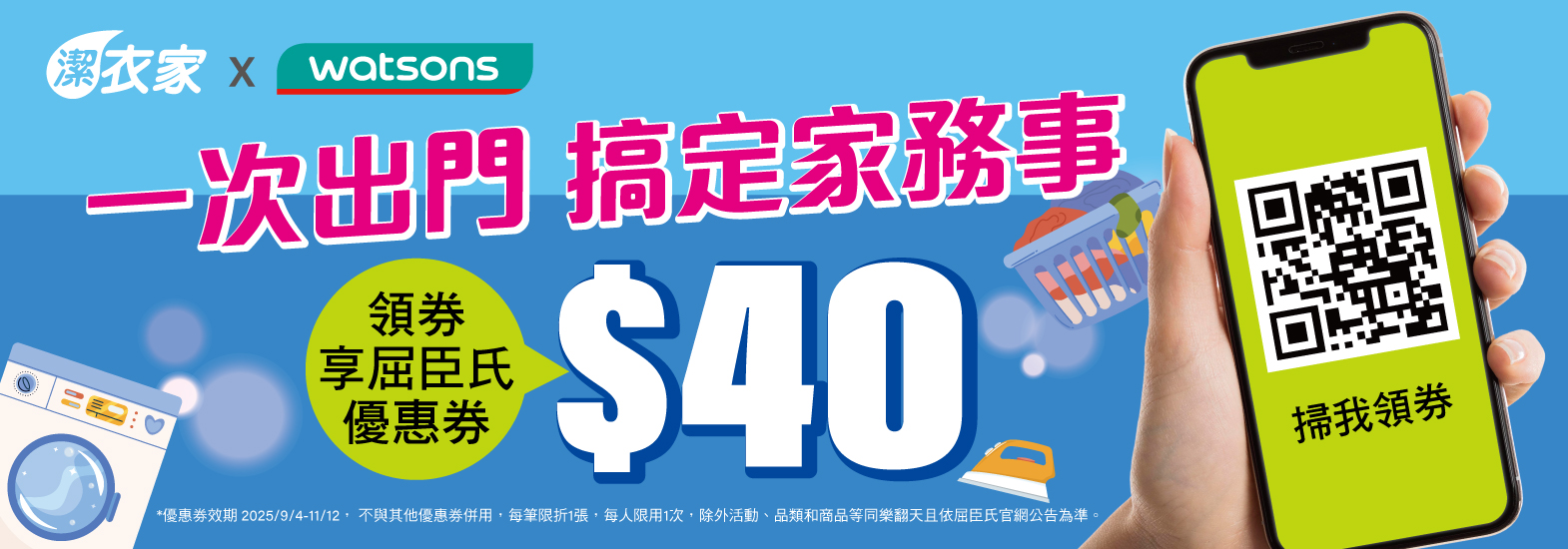[優惠活動] 【潔衣家會員專屬】掃碼就能領屈臣氏$40優惠券!成為屈臣氏會員再送$450迎新購物金!