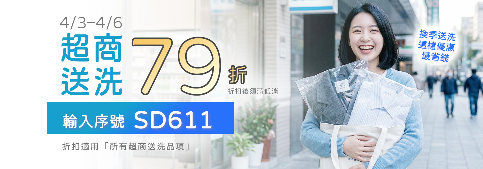 超商送洗輸入序號【SD611】享超商送洗全品項79折(須滿低消)